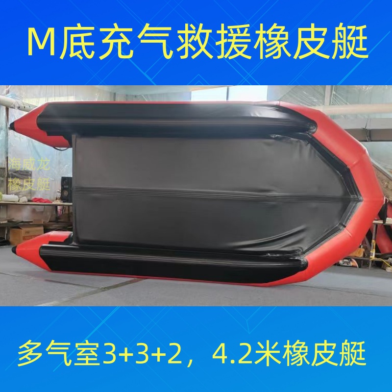 船體浮筒布料采用1.2PVC游艇布,船體尺寸長(zhǎng)度4.2米,寬度195cm左右,浮筒直徑50cm,輔助浮筒直徑13cm,最大匹配功率30馬力,自重93kg左右,也可以底部裝甲貼護(hù)甲,重量會(huì)更重一些。