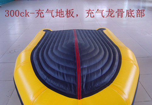 型號:300ck充氣地板橡皮艇材料:韓國進口pvc,3層夾網汽艇布,厚度1.0,中間1100D聚酯纖維網布,純手工制作,結實耐用。