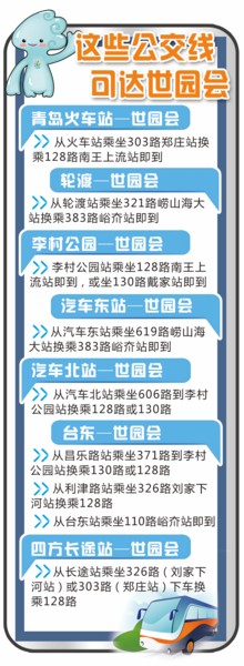 本報訊 2014青島世園會選址在李滄區(qū)百果山森林公園。目前,周邊主要有128路、130路、383路等公交線,從市區(qū)多個地方前往主場址無法直達需要換乘。為此,公交集團于昨日發(fā)布了世園會公交換乘指南,以青島火車站、青島長途汽車站、輪渡、臺東、李村公園等客流密集地為起始點,設計了多條換乘路線,方便市民和游客前往世園會觀光游覽。